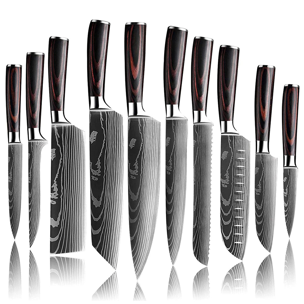 KD Japanese Knife Set 10 PCS Super Sharp Damascus Pattern Kitchen Knives