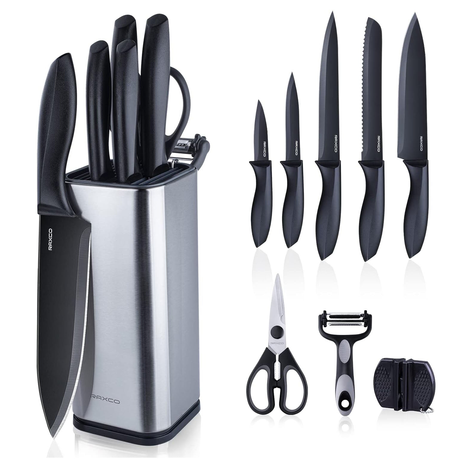 KD 15 PCS Stainless Steel Kitchen Knife Set with Knife Block