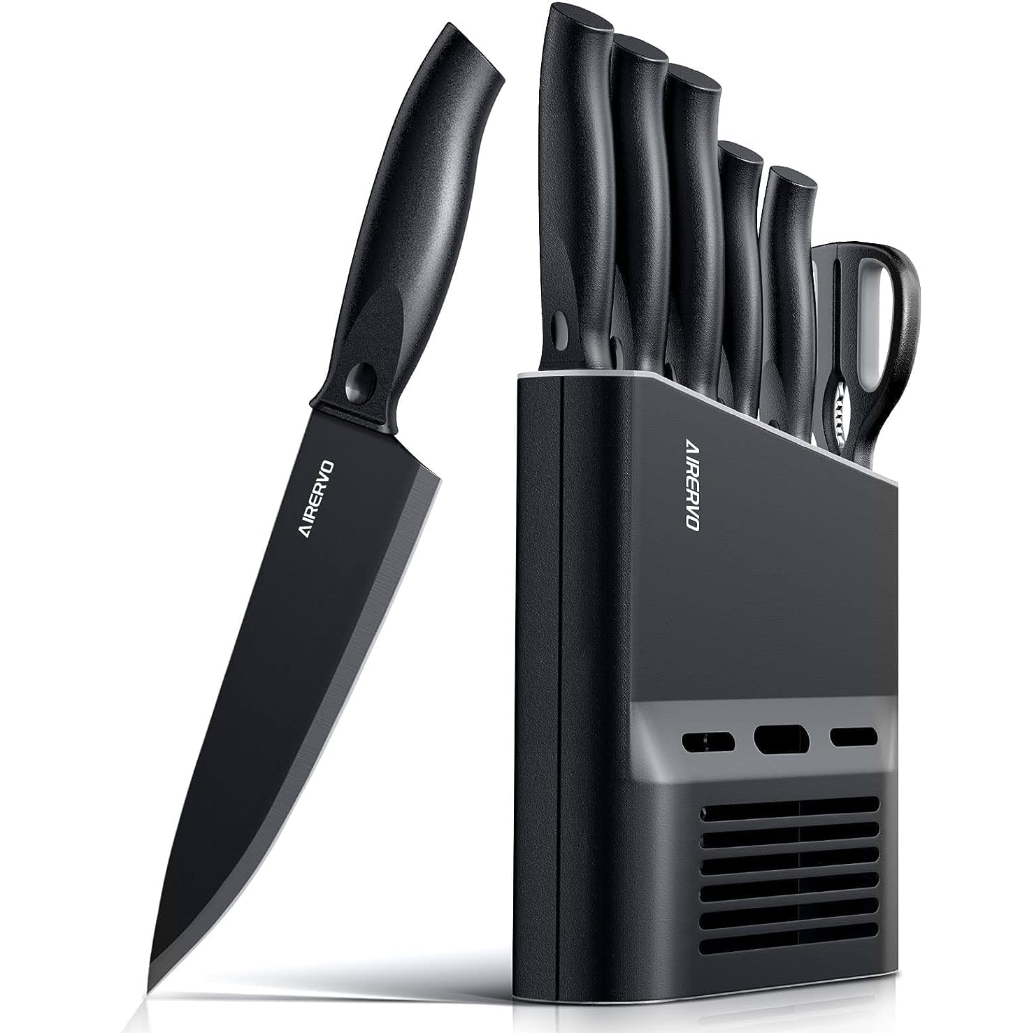 KD 15PCS German Steel Kitchen Knife Set with Built in Knife Sharpener Block