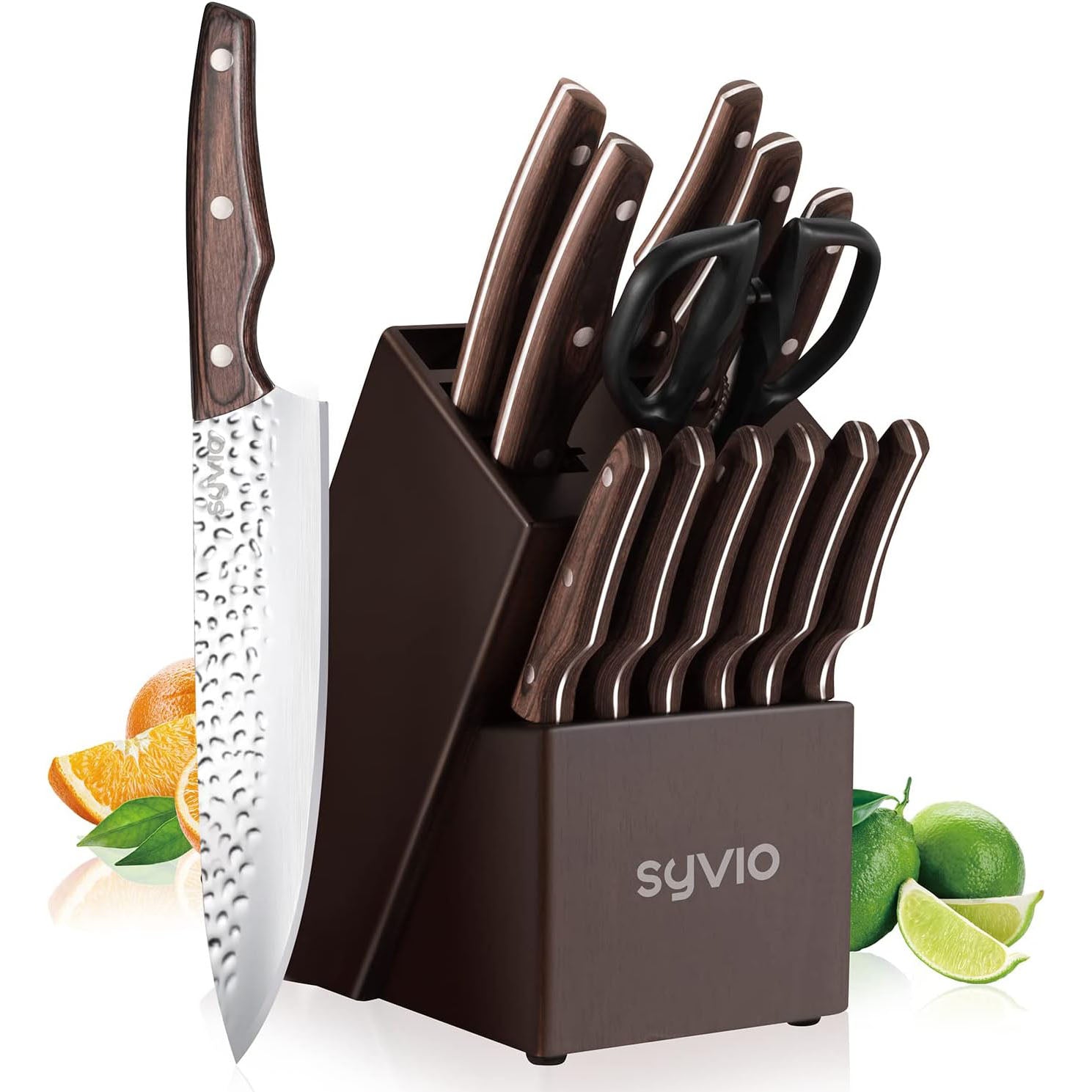 KD 15 PCS Kitchen Knife Set with Block Wooden Kitchen Knives Sharpener