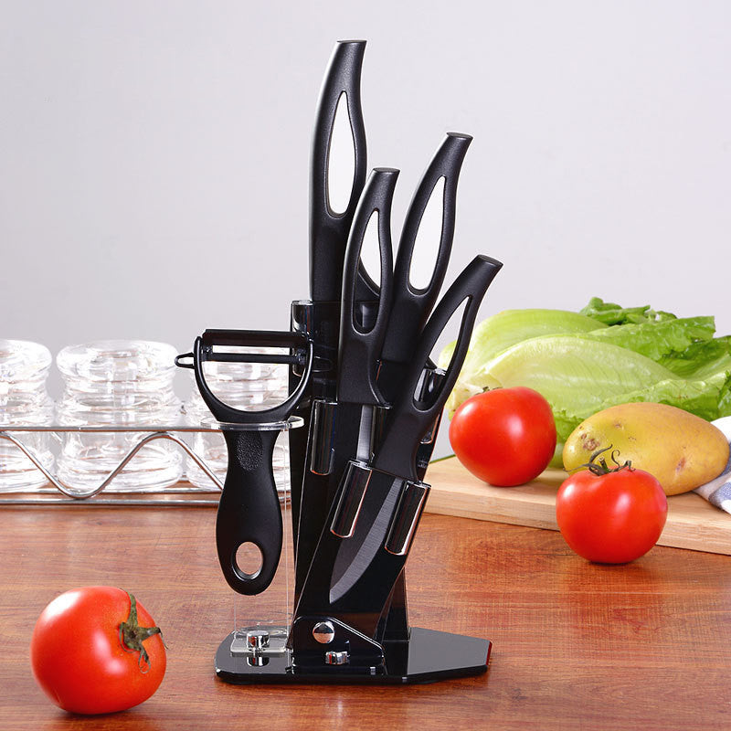 KD Knives Set 6-piece Set Of Black Blade Ceramic Knives With Hollow Shank