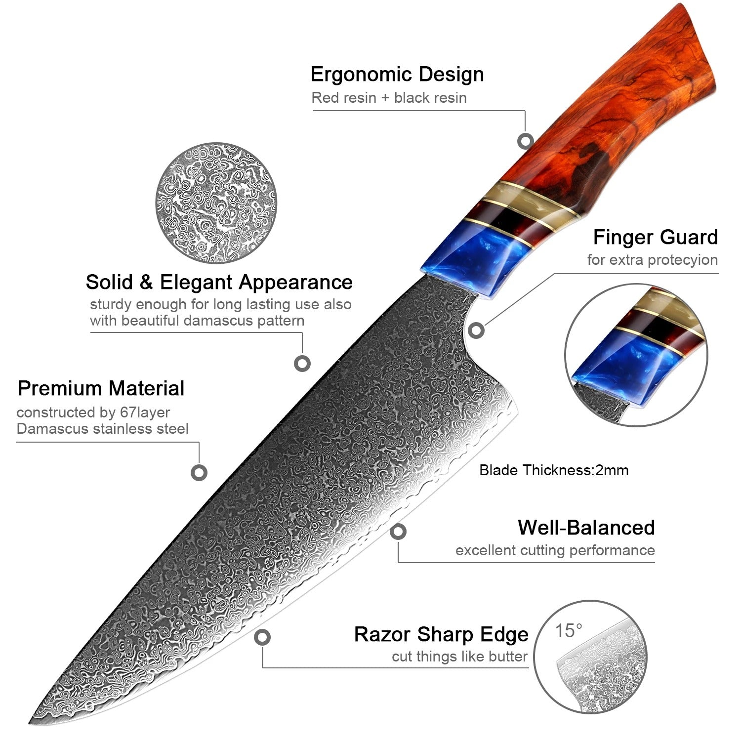 KD 8 Chef Kitchen Knife 67 Layer Damascus Steel Knife Ergonomic Handle