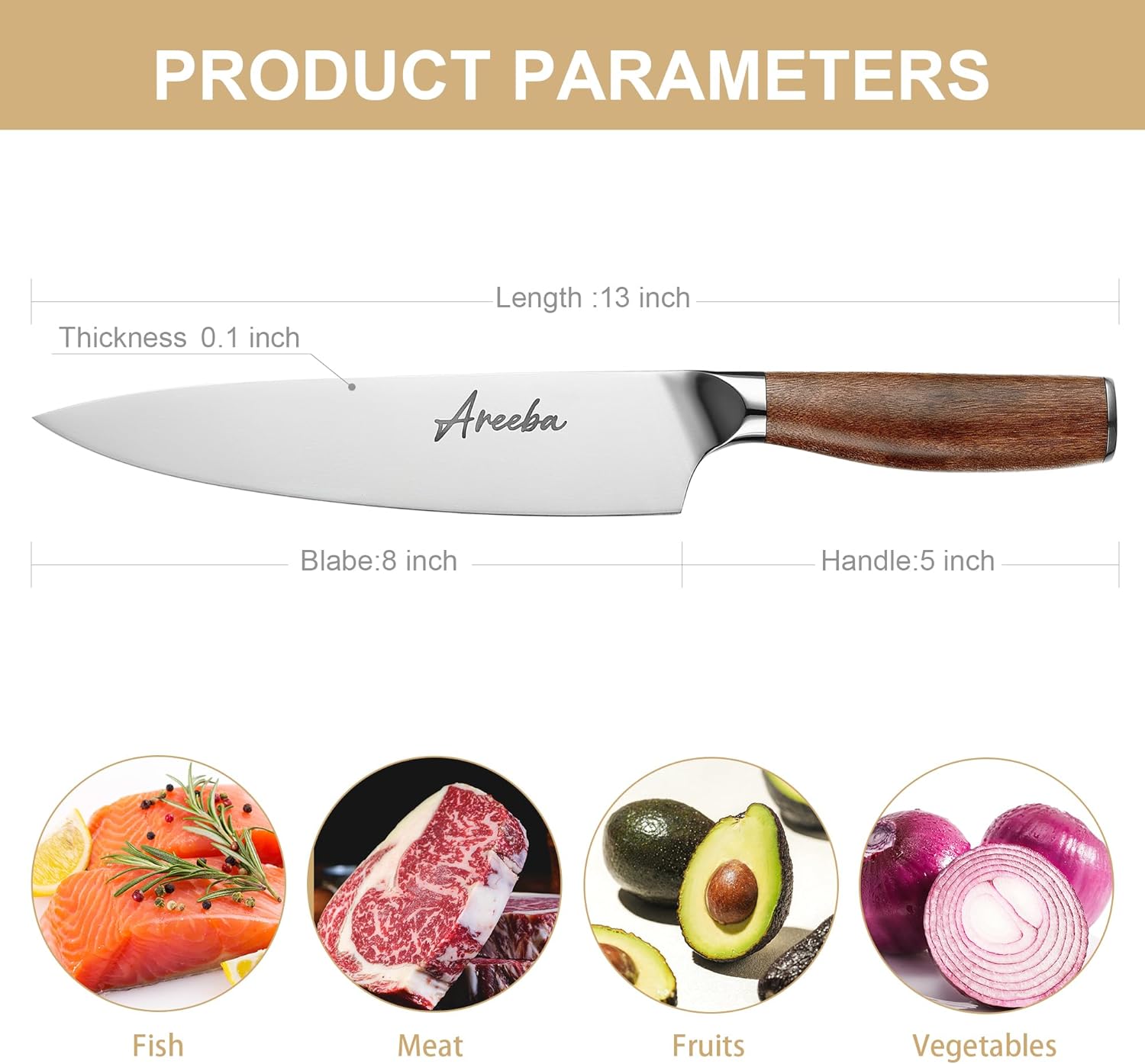 Crafted from high-quality stainless steel. the KD Chef Kitchen Knife boasts a sleek ebony wood handle and comes in a beautiful gift box. With its sharp blade and ergonomic design. this knife is perfect for all your cutting needs. Upgrade your cooking experience with this elegant and functional kitchen essential.