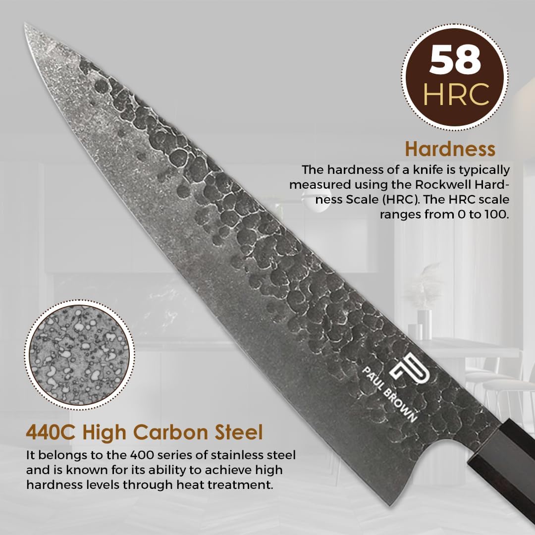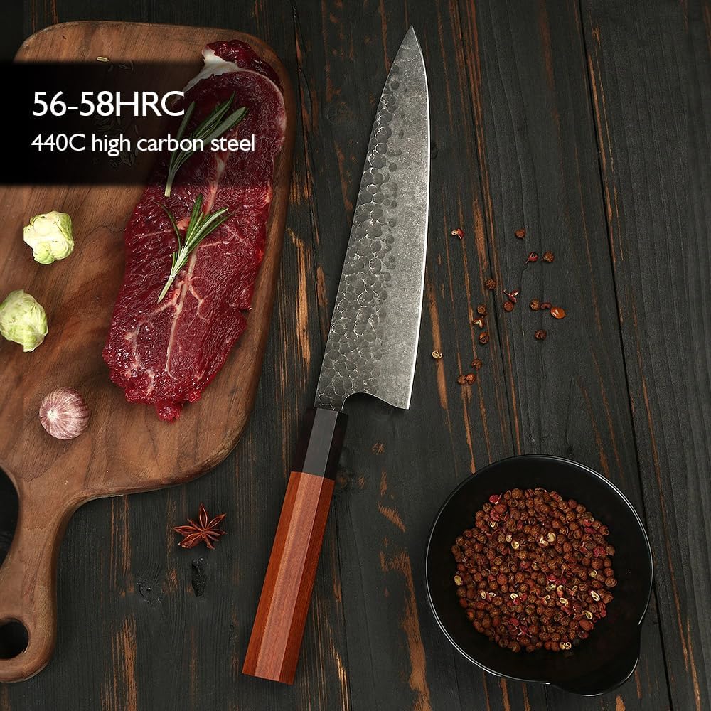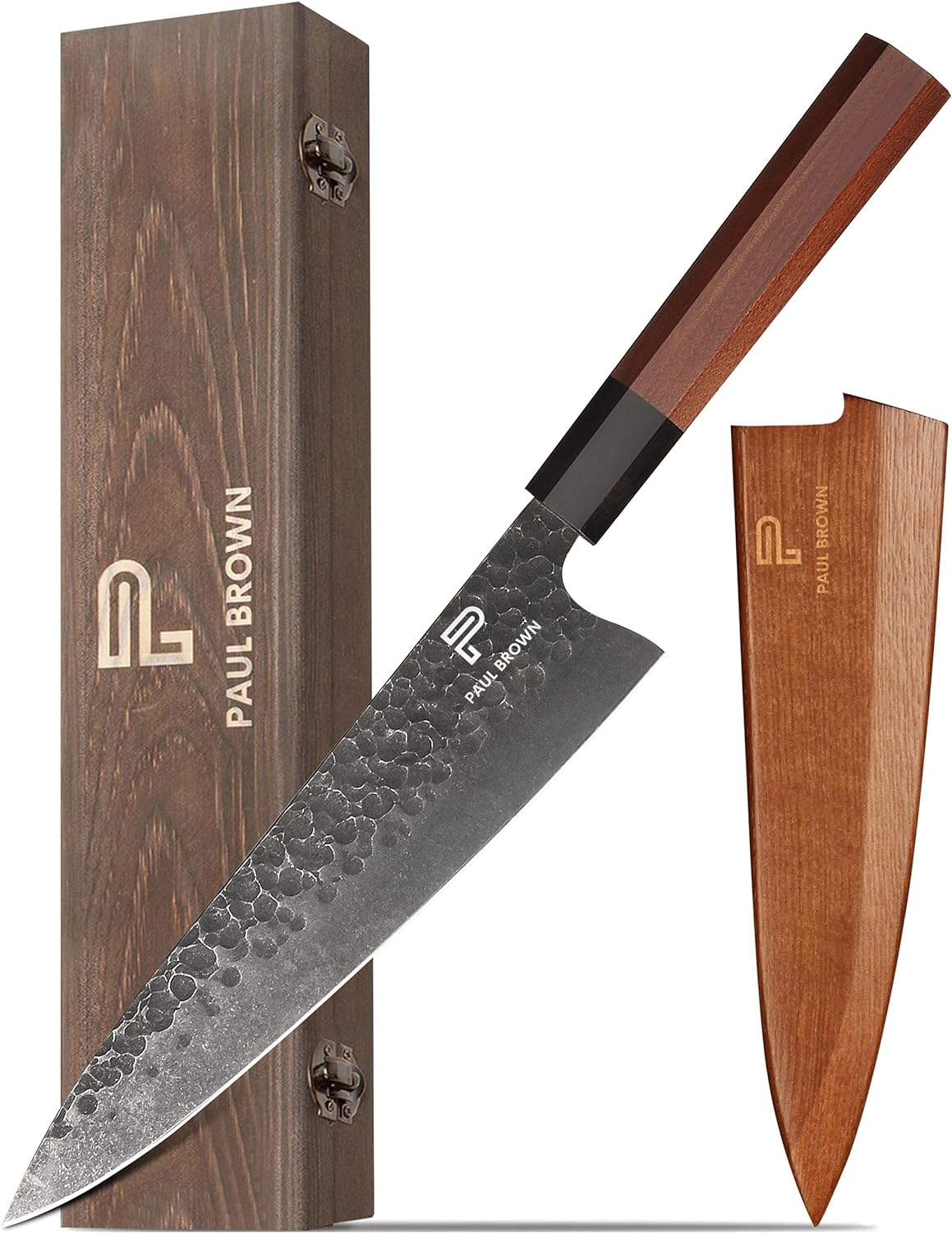 Expertly crafted and versatile. this KD Hand Forged Chef Knife is made with high carbon steel for durability and precision. Includes a protective wooden sheath and elegant box for safe storage and gifting. With its sharp edge and ergonomic handle. this knife is perfect for any cooking task.