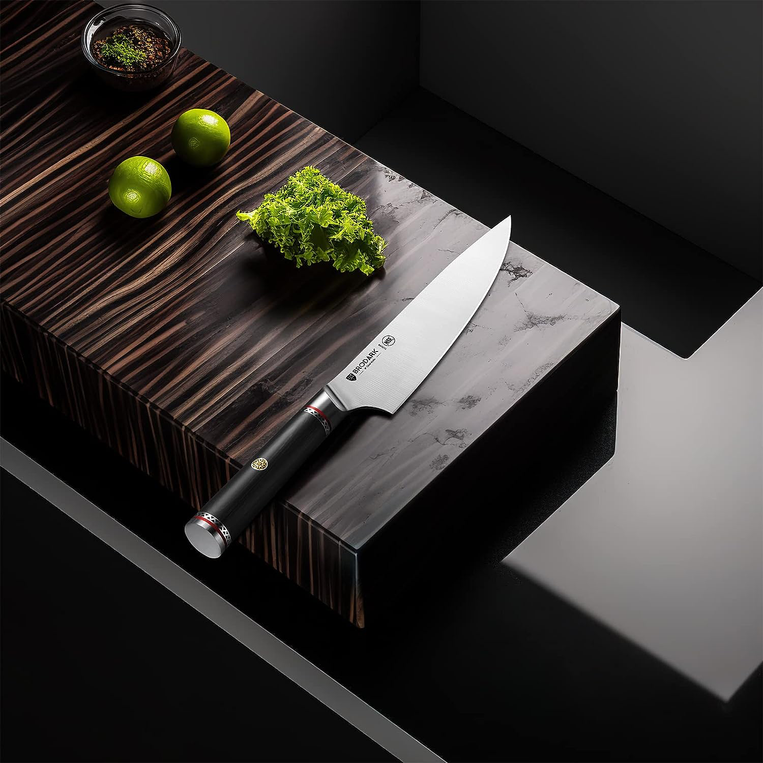 This 8-inch chef knife is crafted from durable AUS-10 steel. featuring an ergonomic Japanese handle for optimal balance and comfort. This allows you to chop and slice with precision and accuracy. while also reducing hand fatigue. It is perfect for everyday cooking tasks.