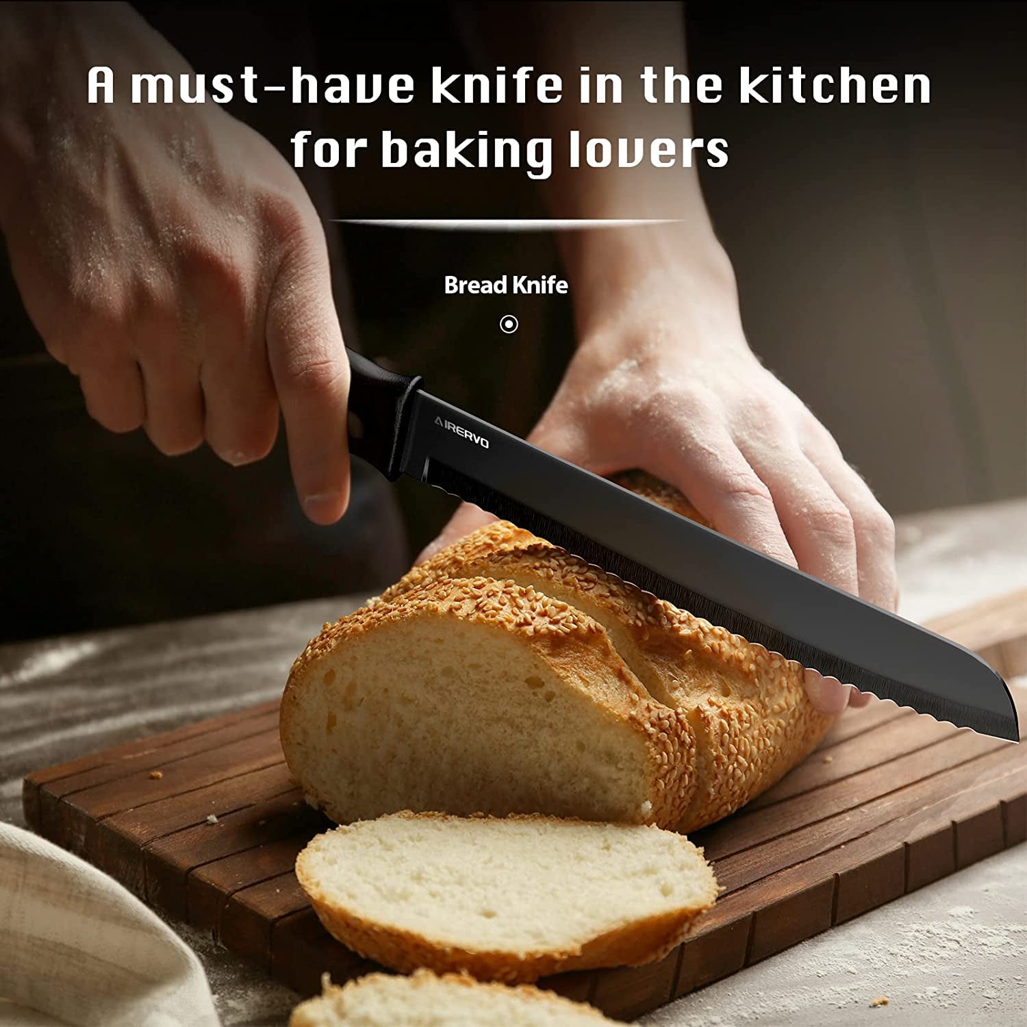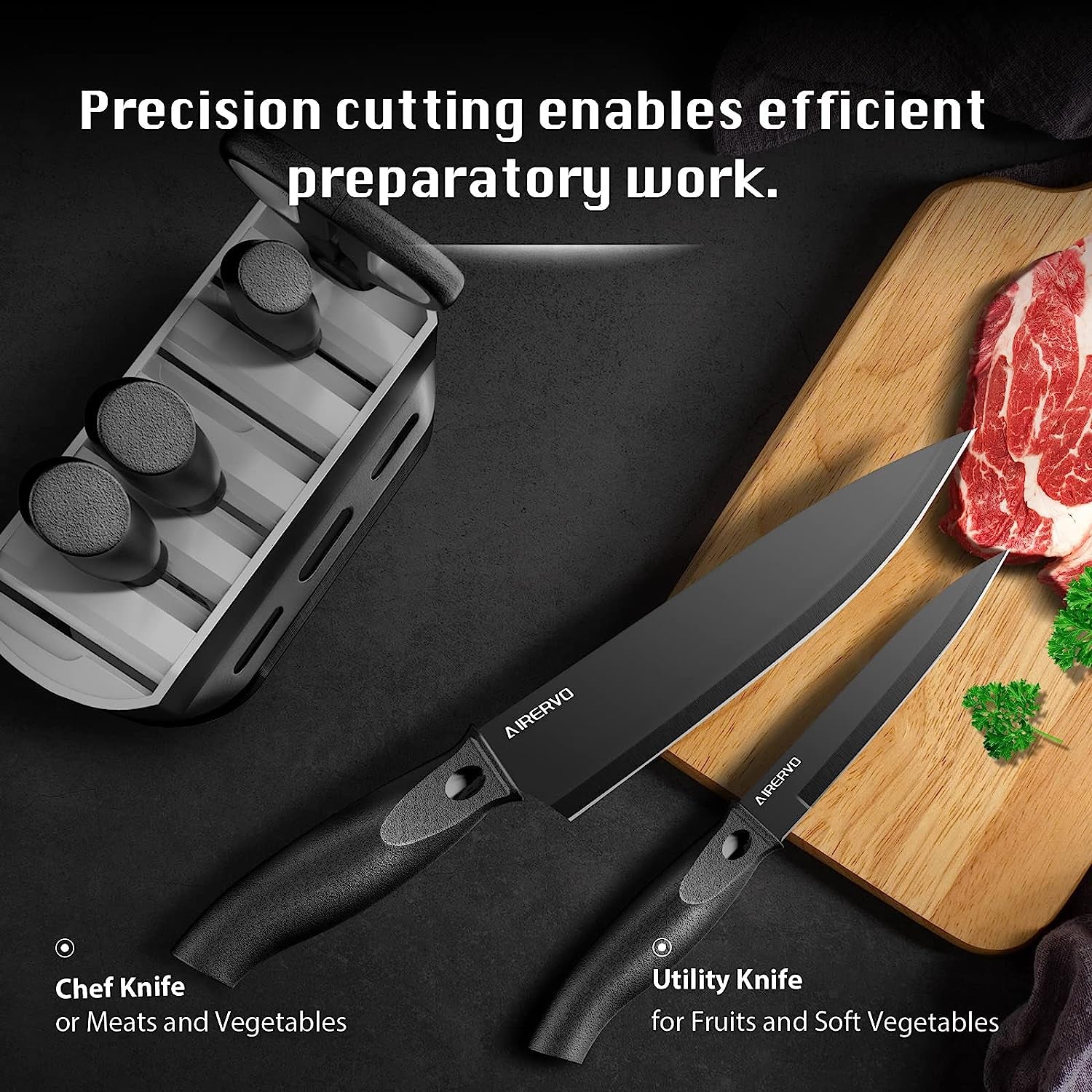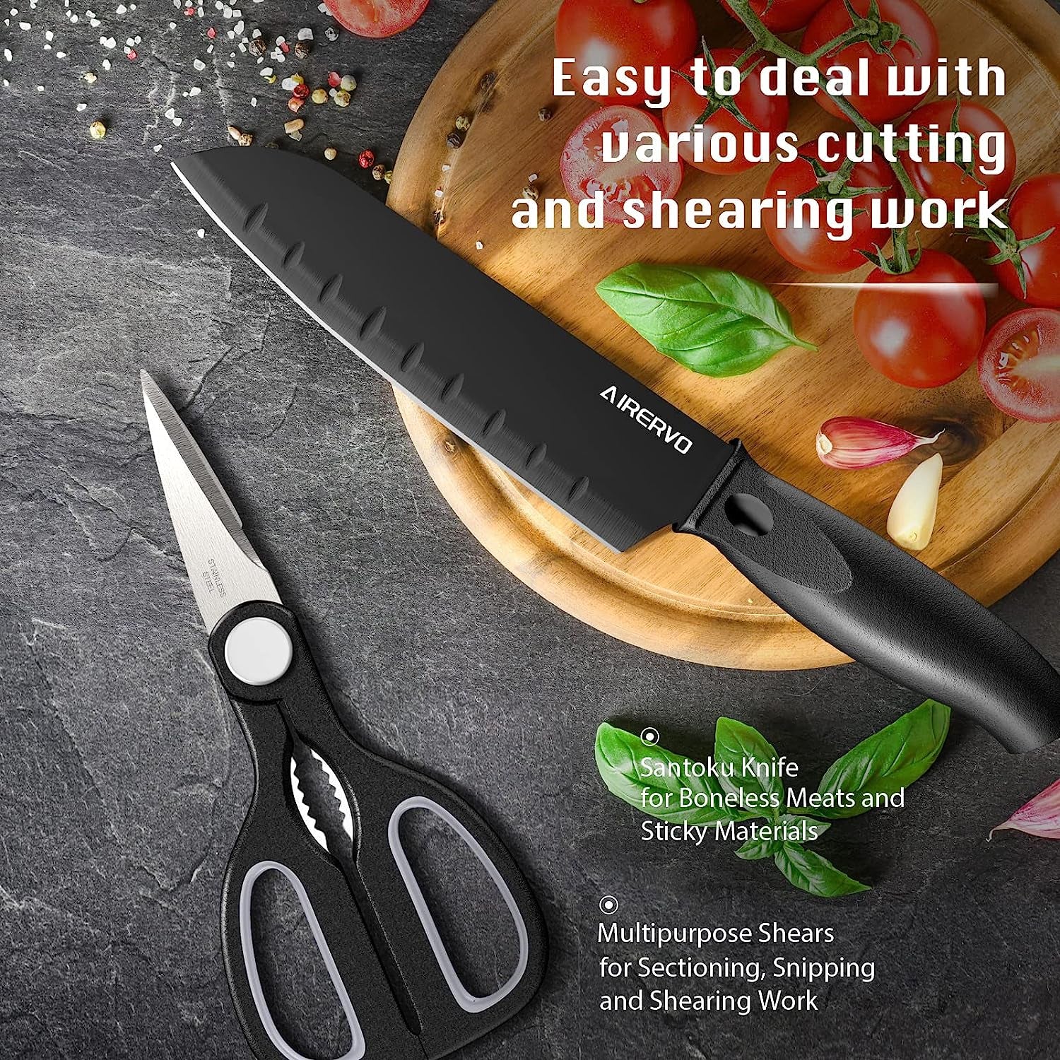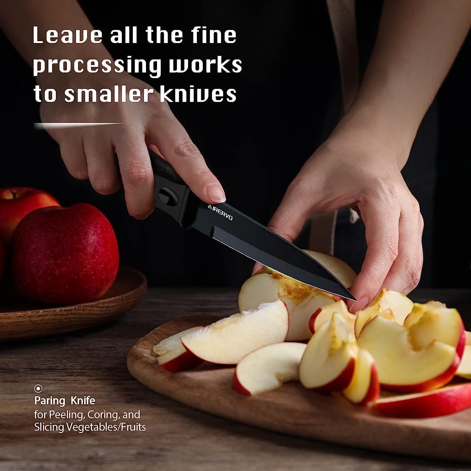 - These kitchen knives are made of superior high-carbon stainless steel. treated with a black BO Oxide technology process ensuring precision slicing. They are also coated with ceramic nonstick for easier cutting and long-lasting sharpness. Anti-corrosive and scratch-resistant. these kitchen knives provide excellent performance.