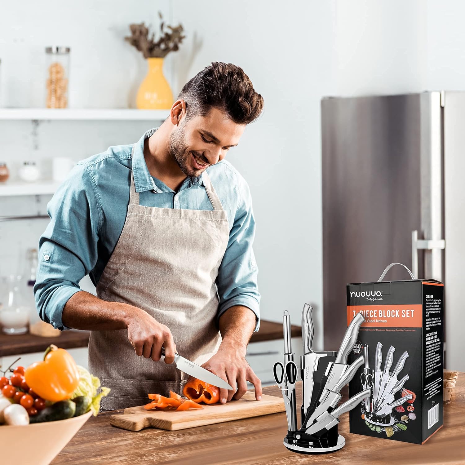 IDEAL GIFT CHOICE: Presenting our rotating kitchen knife set as a wonderful gift for any occasion. be it a birthday. Christmas. or housewarming! Suitable for cooking enthusiasts. aspiring chefs. or as a thoughtful addition to a new home.